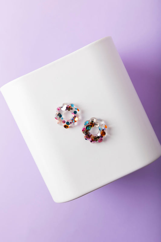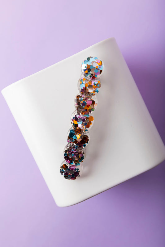 🌈 La pampille Quadricolor est une modèle qui brille de mille feux. Avec ses grosses paillettes rondes argentées, dorées, roses et bleues, elle crée un effet ultra brillant et lumineux.Â