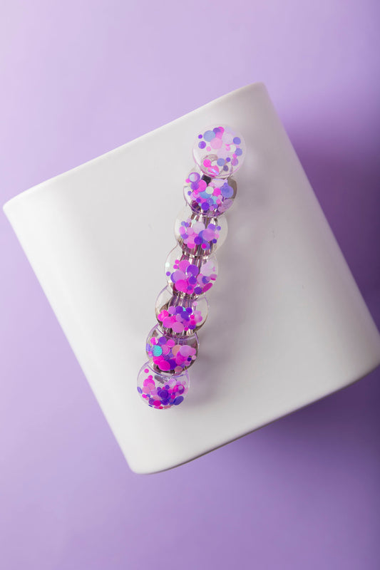 🥳Le coloris Confettis folie est fait de grosses paillettes dans les tons de rose et violet. Parfait pour pimper vos tenues classiques ou pour un total look acidulé !