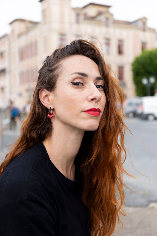 Le coloris Pomme d'amour est un beau rouge à la fois profond et étincelant. Parfait pour les fêtes de village passant de Saint-Jean-de-Luz, Bayonne, Pampelune ou encore même Dax. Il vous suffira de l'associer au blanc ou au noir pour être au top durant ces fêtes estivales.